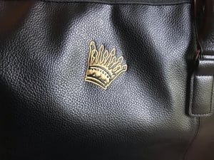 It has the#EoB earl’s coronet embroidered in gold, slightly on the wonk, as is our wont; our label doubling as secret extra pocket; a side pocket for your shoes / time honoured companions without whom you cannot travel; and it zips out flat to be your suit carrier.
